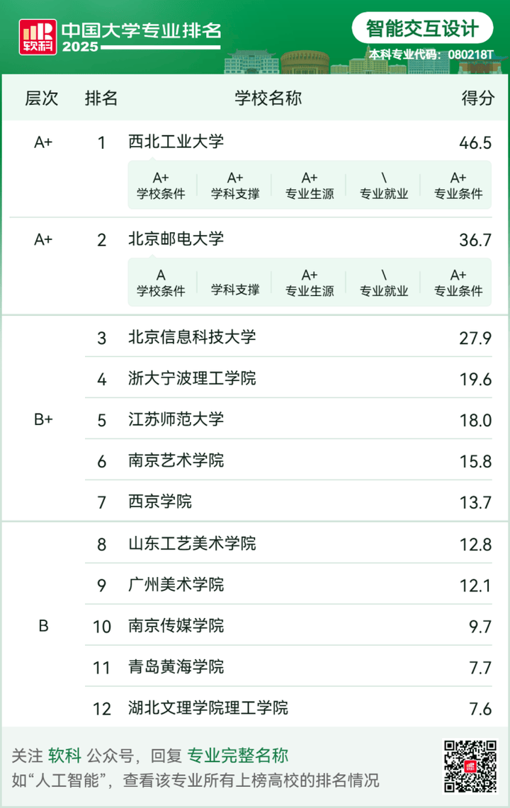 西京学院智能交互设想专业70%以上教师具有高级职称,王秀峰传授、奚延辉传授牵头担任的科研项目工做室,工程师崔杰生、汪晓倩牵头担任的企业项目工做室,周亚男副传授牵头担任的竞赛项目工做室等,给同窗们供给更立异的教育讲授模式。更环节的是,他们均具备丰硕的企业实和履历,既能正在讲堂上教授Python言语法式设想、交互设想道理等理论学问,又能连系行业案例拆解智能硬件交互、用户体验优化等实和技巧。他们将“以用户为核心”的设想取工程实践思维深度融合,率领学生正在AI取设想的交叉范畴摸索立异。包罗工程、消息、设想三大焦点课程模块,既夯实Python编程、机械设想根本等手艺根本,又强化设想思维取表示、智能硬件设想等专业能力。这种课程设置精准对接行业需求——当前国内智能交互设想人才供需比仅为1!8,特别缺乏既懂手艺又通设想的复合型人才,而西京学院的课程系统恰是为填补这一缺口量身打制。 西京学院智能交互设想专业正在软科2025中国大学专业排名中斩获B+级评价,这一成就意味着其讲授质量、科研程度取行业影响力已跻身全国同类专业前列。做为教育部核准的新工科专业,它依托西京学院机械工程学院深挚的办学积淀——该院是学校建立最早的分析性学院之一,具有国度级一流本科专业扶植点、省级尝试讲授示范核心等优良资本,为智能交互设想专业供给了的学科支持。